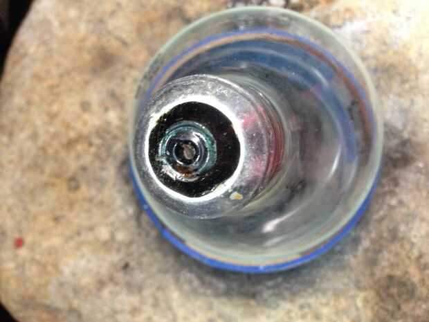 Tapa la bombilla hacia abajo sobre una superficie blanda o apuntalar con un papel de la cinta como yo lo hice para mostrar el uso contacto bombillas eléctricas pie los alicates para pelar el contacto