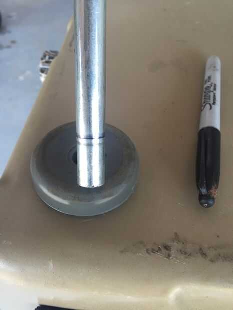 Utilizando la barra de acero de 1/2 y una profundidad de marca sharpie que se sientan en los pies. Entonces toma y cortarlo. Otra vez, usé mi sierra acero cortarlo.