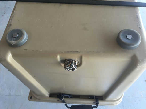 Yo estoy planeando un viaje de camping regreso a la playa con mi esposa este verano y quería una nevera pequeña, con ruedas con sostenedores de taza empotrada en la tapa. No existe. La más pequeña nevera con ruedas que encontré con sostenedores de ta