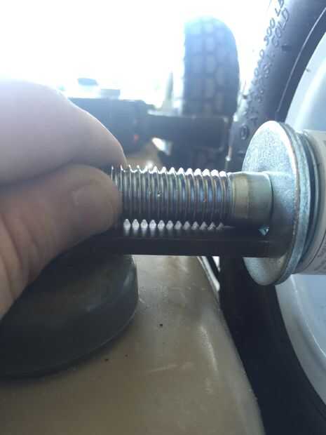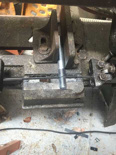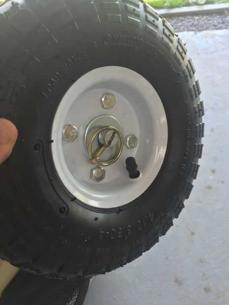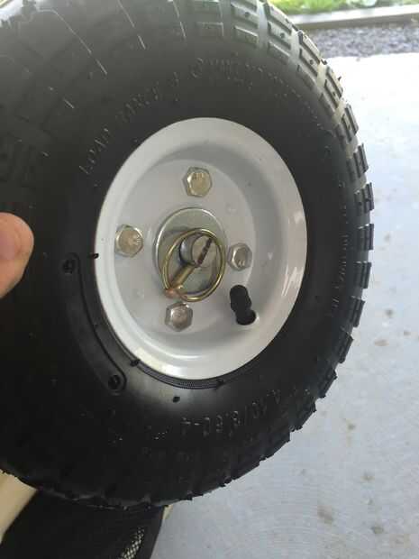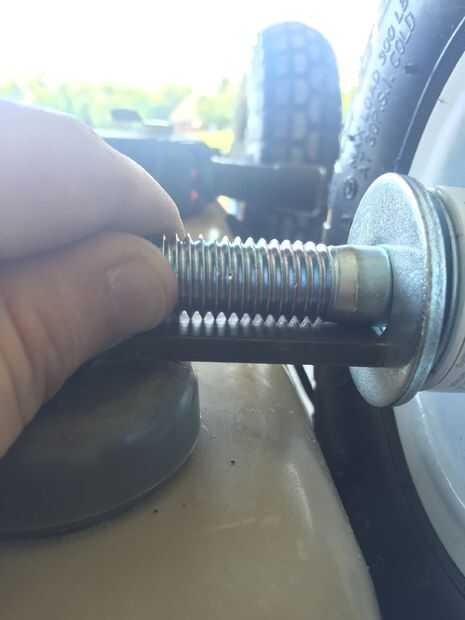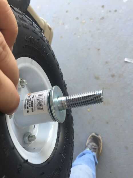 Ahora montar su árbol con su lynch perno y una arandela en cada lado de la rueda. Coloque este conjunto sobre la barra que tienes sentado en tus refrigerador pies. Si quisieras soldar en la parte inferior, creo que se podía hacer eso pero tienes suficiente espacio para soldar en la parte superior que es lo que elegí hacer. El eje es demasiado largo por lo que tiene que cortarse para permitir que se ajuste al pie de la salida del enfriador. Mantener y marcar un hilo de rosca y cortan a la longitud. Repita en otro lado y pasemos al siguiente paso.