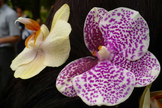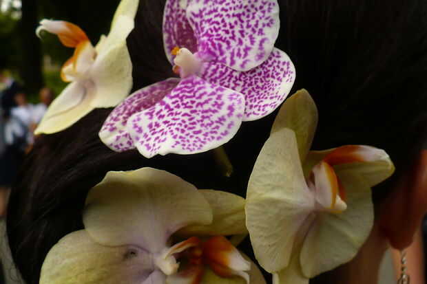 Cuando asistimos a otra boda, esta vez como simples invitados, gues la novia lo que había en su pelo... es cierto, la próxima semana púrpura orquídeas.