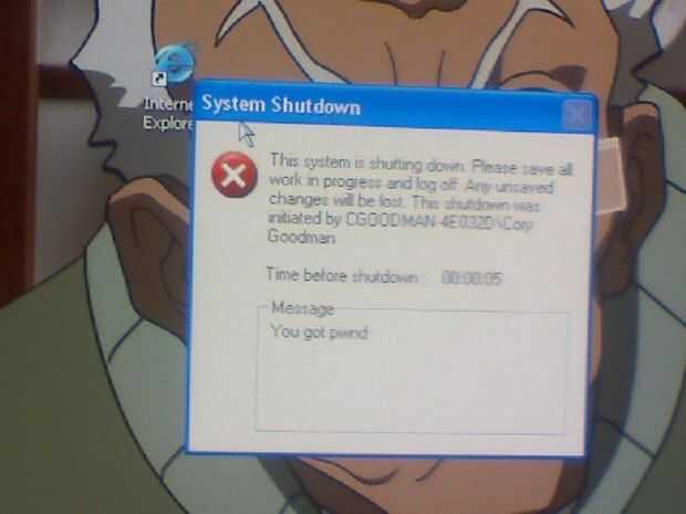 Algo que es similar a la imagen de abajo debe saltar, y después de que el contador se agota, el equipo se apagará automáticamente. La única manera de detener esto es si alguien borra el acceso directo, pero dudo que se figuran que es lo que está causando las paradas.
