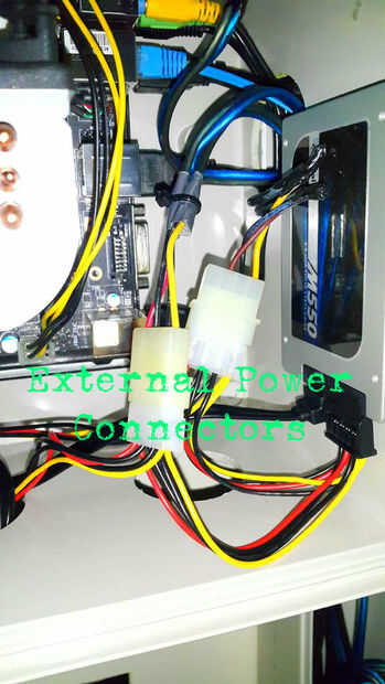 El vatio 250 M4 atx se utiliza para proporcionar 12v y 5v a otros dispositivos externos a este recinto, es decir, el router wifi, modem Internet, altavoces de sonido envolvente 5.1, temporizador de relés, relés de infrarrojos, etc.. Los conectores molex de 4 pines son ideales para esto.