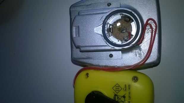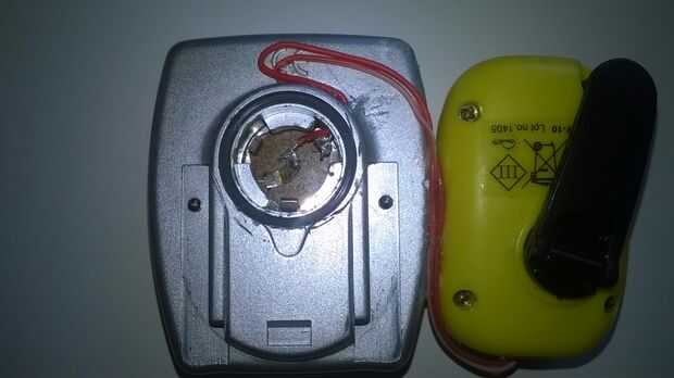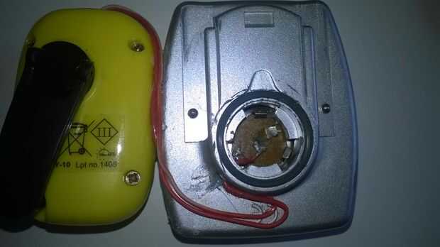 Cables soldados a los contactos de la computadora de linterna y bicicleta. Observar la polaridad!