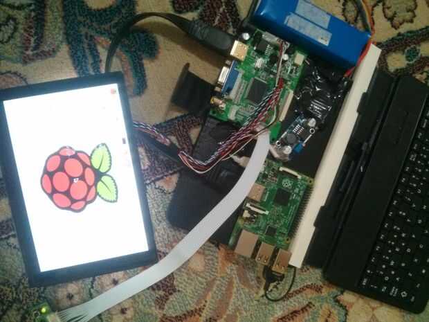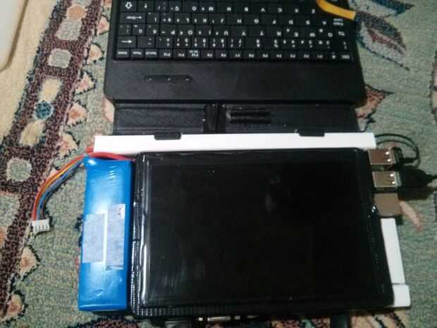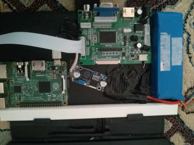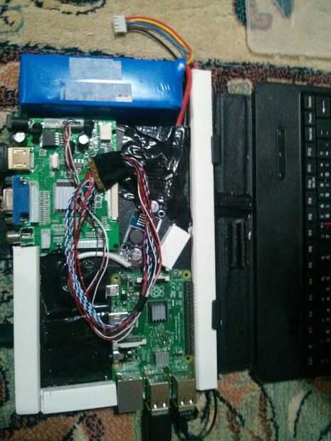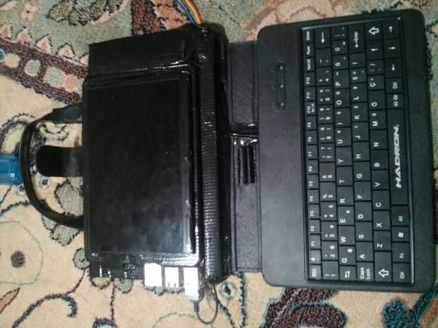 La cinta se utiliza para algunos pato apuesto. Bajo costo DIY frambuesa Pi portátil está listo para uso. Cable de HDMI es accesible desde fuera de la caja. Así frambuesa Pi puede ser utilizado con pantallas externas o la pantalla se puede utilizar con otros dispositivos...