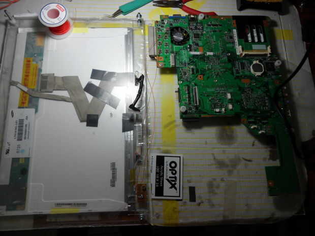 Hacer una ranura para el cable de la pantalla. para hacer esto, perfore cuatro agujeros consecutivos utilizando el taladro y luego presentar a las irregularidades. Inserte esta cubierta encima de la pantalla, que debería ya ser que reside en la portada entre las tiras.