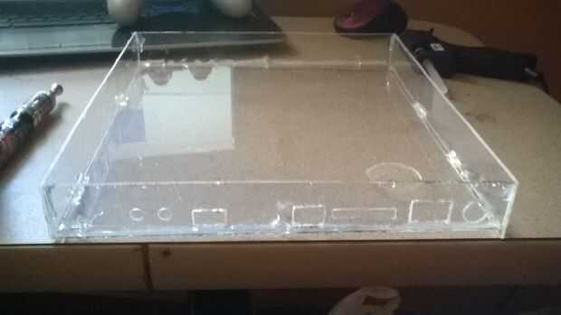 Vamos, ahora que tienes las piernas aparte y funciona correctamente, usted necesita decidir lo que su uso para construir el caso y cómo vas a construir. Me decidí por acrílico. hacer una estructura áspera de la caja y en las piezas del ordenador portátil y decidir cómo se va a colocar y donde. y marque los orificios necesarios para cortar en el acrílico.