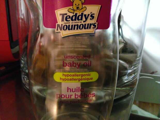 he utilizado 7 botellas de aceite para bebé sin perfume que costo $3 por la botella. Cada botella contenía 592 mL de aceite mineral.