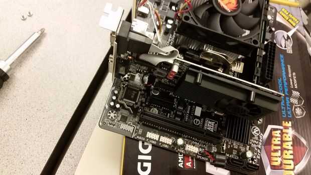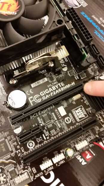 El siguiente paso es poner la tarjeta gráfica en la siguiente ranura. Quizás tenga que presione un poco duro en este caso, así