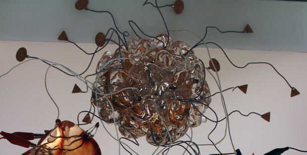 Las piernas marcadas en el chip pueden ser pernos analouge y digital. El chip está dentro de la escultura de vidrio hueco y los cables sale de los agujeros perforados.