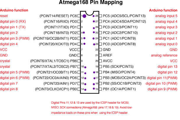 (si no utilizas SparkFun FT232 breakout junta puede también usar patillas digital 0 y digital 1)