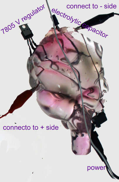 Asegúrese de que los cables de los reguladores de voltaje 7805 se coloca lo suficientemente cerca en el vidrio de la soldadura a pero no en contacto entre si