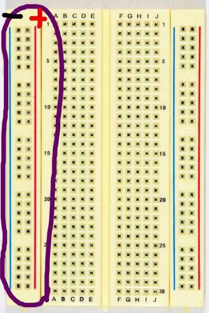 La parte con cobre muchas "armas" es como el + - lado en un protoboard de experimento en un DIY-arduino normal.