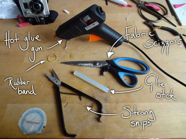 • Fuerte tijeras de hojalatero (utilicé unas tijeras para metal, pero también puede usar cortadores de alambre o scizzors muy fuerte)