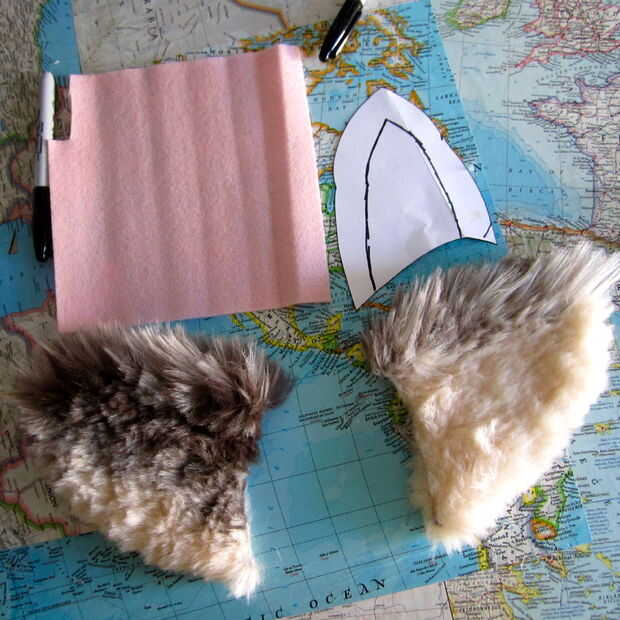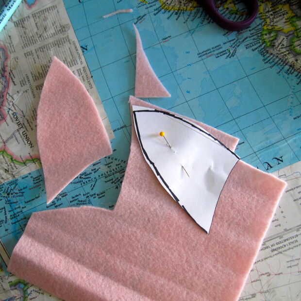 Utilice la plantilla de la oreja de papel inicial y dibujar qué tan grande quieres que el interior y luego recórtalo y probarlo en uno de sus oídos. Lo mejor es probarla cuando la tela es sobre la forma de la cartulina. Una vez que estés feliz, cortar dos de las formas en el fieltro.