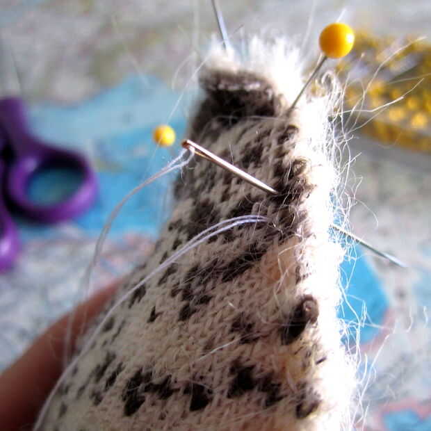 Asegúrese de que nudo muy bien y hacer unas pequeñas puntadas en cada extremo de la oreja. Deje la parte inferior de la oreja abierto. :)
