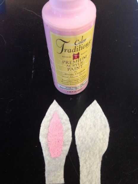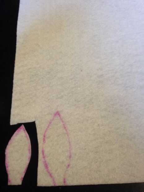 En el sentido utiliza un marcador para trazar las orejas y cortan, cortando así las manchas de marcador. Hice los fondos un poco más largos para sujetar a la pieza principal. Después se cortaron las orejas, he pintado el interior de las orejas rosa y deje secar (que era rápido). También puede usar un rotulador, que tendría si hubiera tenido el color correcto conmigo.
