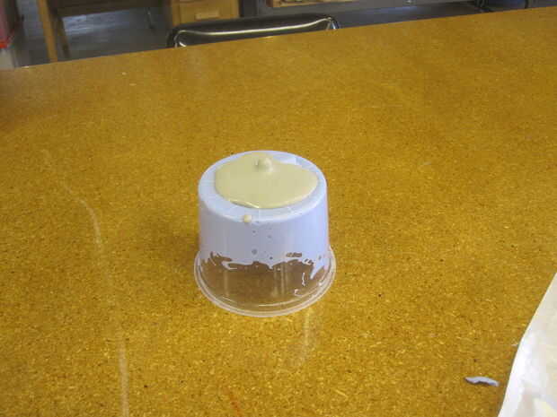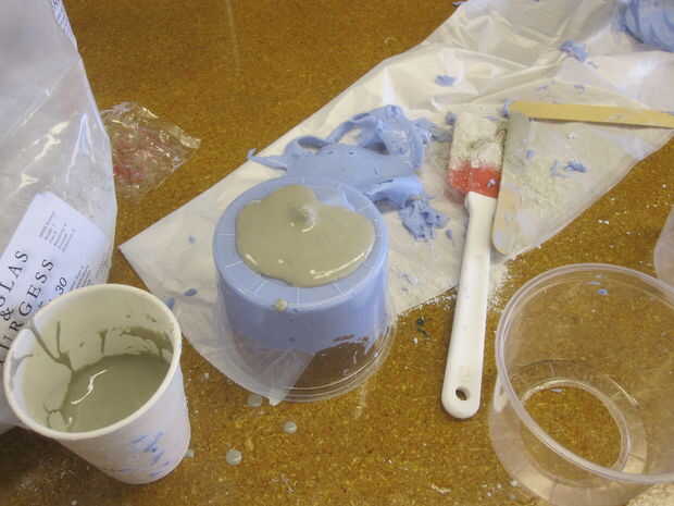Vierta el yeso en el molde negativo. Asegúrese de agitar o golpear ligeramente hacia fuera de las burbujas de aire, como va a arruinar su casting. El alginato es un molde de una sola vez y tienes que destruir para eliminar la oreja positivo de yeso. Su molde de yeso debe overfloweth. Aunque el Ultracal pondrá en menos de una hora, es mejor darle varias horas para alcanzar plena dureza, especialmente con tales formas finas en el molde de alginato negativo muy húmedo.