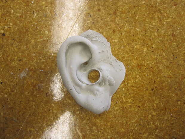 Tire el molde de alginato sobre el oído de yeso replicados.  Ahora será capaz de decir si ambos su vierte salió bien.