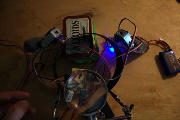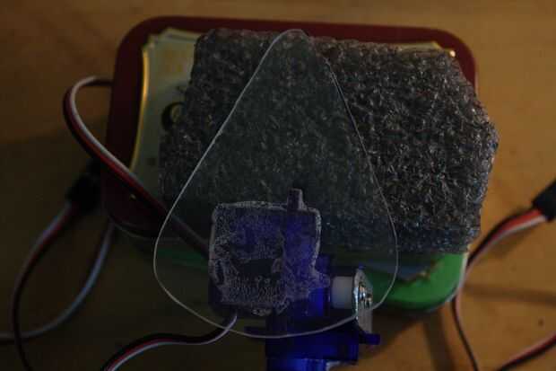 Una vez que se seca, me gusta correr a través de los movimientos preestablecidos otra vez para asegurarse de que el respaldo no ha obstruido la gama de los servos superior. Dependiendo de cómo de espesor que ha realizado la espuma, podría ser un pequeño labio en la parte inferior que interfiera con el servo de la base. Si lo hace, sólo cortar la parte de la espuma que golpea el base servo.
