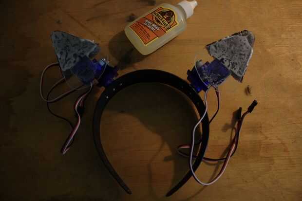 Utilice el gorila pegamento en cola a la parte posterior del acrílico frente orejas y esperar hasta que se seque.