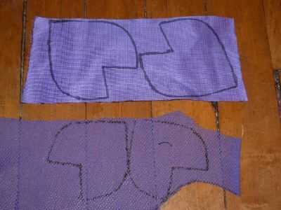 Dibujar y cortar el patrón como se muestra en el papel, con el interior (scretchy) tela un poco más pequeña. Cuando se usa piel sintética, los diferentes tamaños de las piezas delanteras y traseras Hale la piel del faux para el frente un poco y crear un borde de piel sintética en el frente de los oídos (super lindo)!