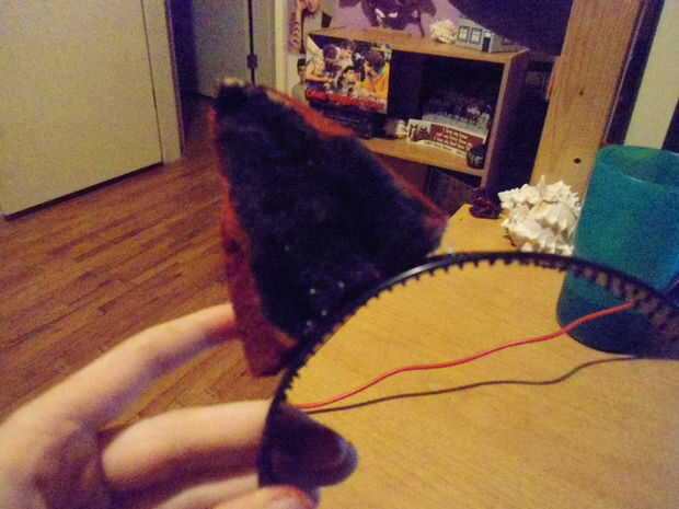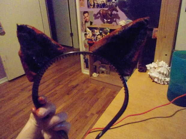 -Una vez que el pegamento caliente, pegar la parte inferior de las orejas. Si quieres un poco se puede curvar para un efecto más realista.