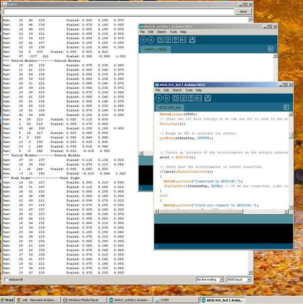 Estaba tratando de ver qué tipo de datos salía el ADXL345 para ver cómo podría usarlo como un sensor de inclinación.