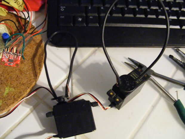 No tengo cualquier lujo personalizadas piezas trabajadas a máquina para fijar los servos así sólo con cinta en algunos cables y me fui de allí.
