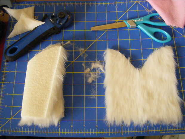 Cortar una forma similar de espuma de arte para el soporte del cartílago de las orejas...