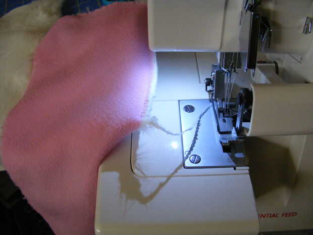 Usé una remalladora porque, me can...well, he encontrado que la manera más rápida para coser algunas cosas, sólo el dolor es cuando el hilo se rompe porque está empujando demasiado grueso de tela a través o tratando de tallar la forma como los caminos de Monte Carlo.