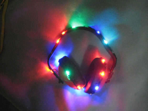 nivel de tolerancia. Por lo tanto, usar tapones para los oídos y orejeras. Puede parecer un poco dorky, así que decidí hacer que se vea mucho dorky añadiendo algunos bling de LED.