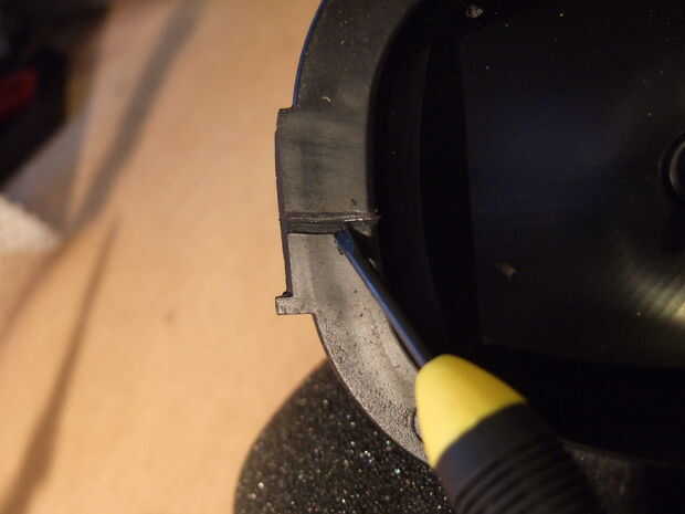Desmontar las orejeras. Realizar un pequeño canal para el cable en el resto en a. Vea la foto.