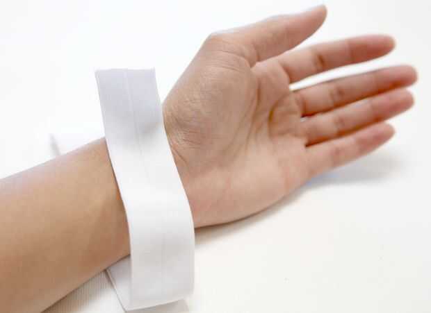 Utilizando la pulgada 1 pieza elástica, medir o aproximar la muñeca que va usar el ramillete. Pegamento caliente y corte los dos extremos juntos para que ahora tengas una banda cerrada.