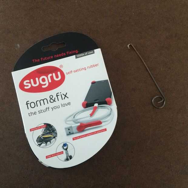 Sugru es un caucho de la uno mismo-ajuste para fijar, modificar y mejorar cosas.  Se moldea como plastilina, adhiere a casi cualquier cosa y se convierte en un caucho de silicón flexible, fuerte durante la noche.  Viene en varios colores y es ideal p