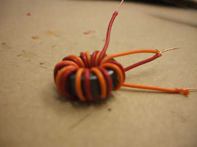 Ahora si este cuerpo pequeñas criaturas se va a trabajar, necesitarás algo para la vida de la bomba en él! usando a los filamentos opuestos de cable aislado, envuelva juntos alrededor del núcleo de ferrita. Cuando se llena hasta (8 vueltas) retorcer juntos dos suplentes de cada lado.