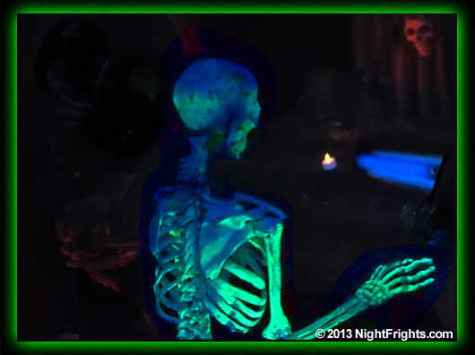 Estación de luz negra cerca de donde iluminará el esqueleto mejor, manteniendo el punto de vista de la audiencia en mente. Tratar de evitar que la luz negra brillando sobre el operador tanto como sea posible. Cualquier iluminación cerca de la sala debe mantenerse al mínimo para no regalar el truco!