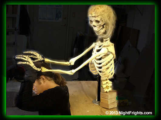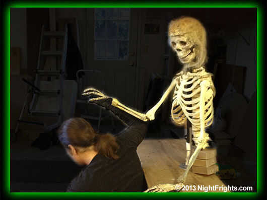 Ahora viene la diversión operando su nuevo organista esquelético Part...! Sentarse en el suelo frente al Banco de órganos y meter las manos en los guantes de esqueletos. Pato la cabeza debajo del teclado y levanta los brazos para que las manos descansan sobre las teclas del órgano.