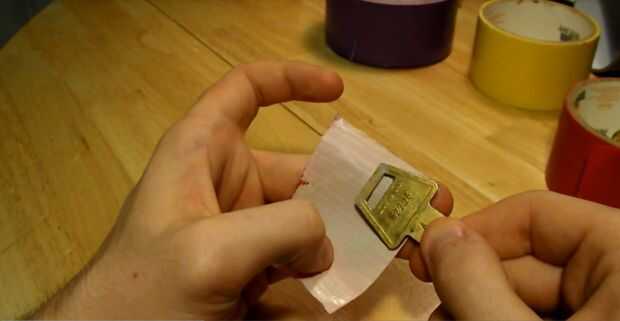 Luego Envuelva la parte superior de la tecla en cinta adhesiva, asegurándose de que no cinta la parte que realmente se inserta en la cerradura!
