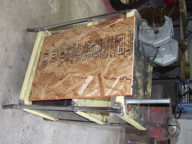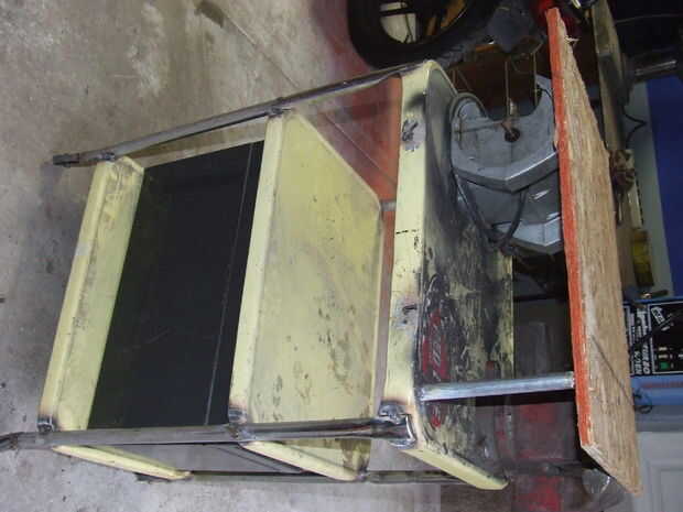 necesitaba la amoladora Banco y prensa en algo semi móvil. Tenia un carro viejo pero era muy inestable. Por suerte tengo un soldador. Había soldado en todas las articulaciones y que refuerza realmente para arriba. Los orificios perforados y atornillado el tornillo de banco y de banco amoladora, pero entonces se dio cuenta de que necesitaba un poco más de la mesa cada vez del espacio y un tiempo. Como se puede ver tiene una placa que puede ir en la parte superior o colgar del lado de la varilla soldada con autógena en que puede colgar.