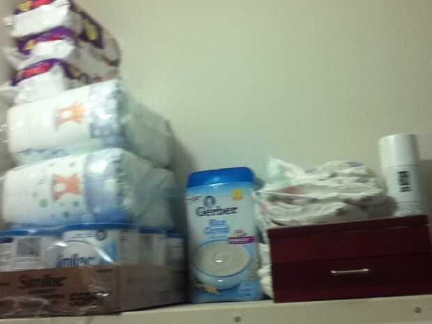 Línea de cajas de fórmula pañales y toallitas todo a un lado para fácil acceso y se adapta muy bien bebé arroz alineado a su lado