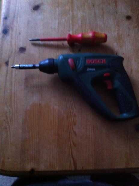 Taladraron previamente mis agujeros con una broca piloto pequeña para evitar que se resquebraje la madera. (Pedacito de taladro debe ser una fracción menor que la anchura de su eje de tornillo).