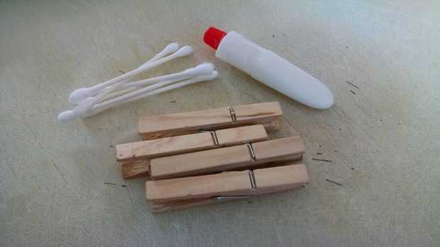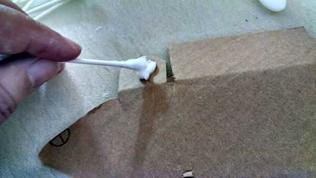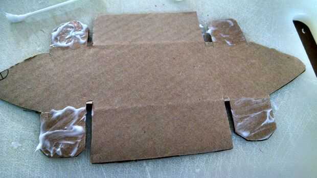 Te necesita de pegamento, un hisopo de algodón (algunas si hace más de una caja) y un resorte tipo ropa pines. Retire cualquier cinta poly de pegar las superficies. Aplique una capa delgada de pegamento blanco ordinario a las fichas, distribuidas uniformemente.