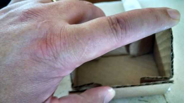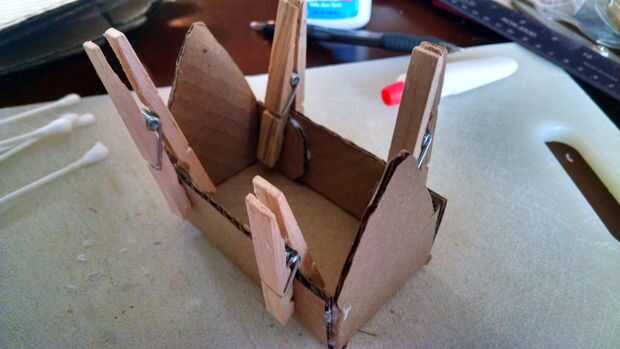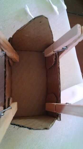 Cuidadosamente doble las lengüetas y presionar contra los lados. Esta parte siempre es un poco incómoda para cualquier persona con solo un pulgar en cada mano... Sujete en su lugar con un pin de ropa o lo que usas. Dejar secar durante al menos 8 horas.