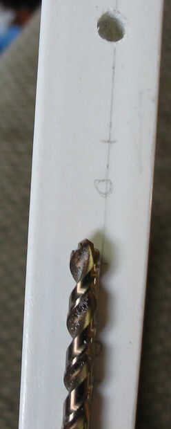 Nota: En este, mi prototipo, que originalmente marcado de 3/4 de pulgada (rectas) se incrementa y luego cambió a una pulgada aumenta (las marcas círculos) antes de empezar la perforación.