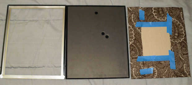 Sobre la mesa delante de usted, pone el marco, el respaldo y la cartulina cubierta boca abajo (frente orientado hacia atrás mirando hacia usted).