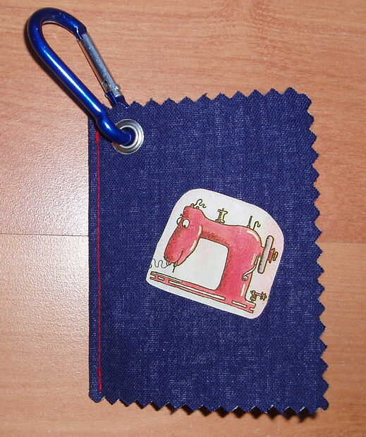 Doble aguja-caso cubierta por la mitad para que el caso mide aproximadamente 7.5 x 10 cm (3 x 4 pulgadas). Si pones a la tela en el exterior, puede añadir una aplicación. Si tienes tijeras dentadas usan para recortar los bordes, si no utilizar tijeras de llano.