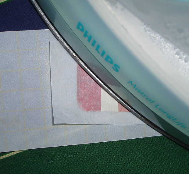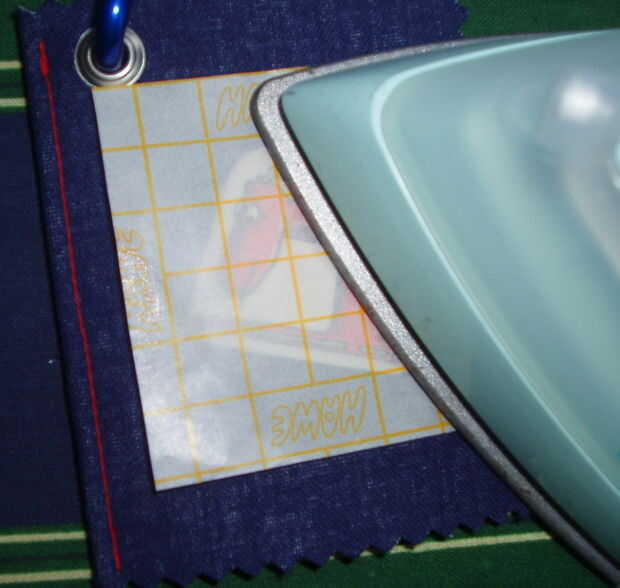 Recortar el papel sobrante del borde. Retire el papel protector y luego planchar suavemente al frente de la caja de aguja. Asegúrese de utilizar sólo un marco de hierro fresco y coloque papel de cera sobre el papel como el papel tiene un recubrimiento plástico que podría derretir y arruinar su plancha.