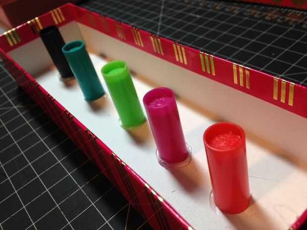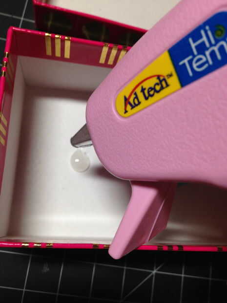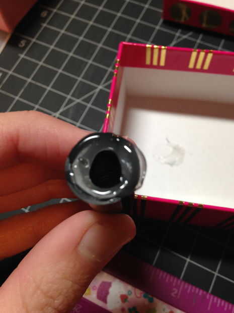 Si está usando tapas de marcador, espacio les cerca de 1 pulgada de distancia en su caja con la tapa. Colocar un punto de pegamento caliente donde quieras la tapa para ir y arrojar a chorros un anillo de pegamento caliente alrededor de la base de la tapa. Presione la tapa firmemente en el lugar deseado. Repita este procedimiento hasta que todos los tapones están pegadas.