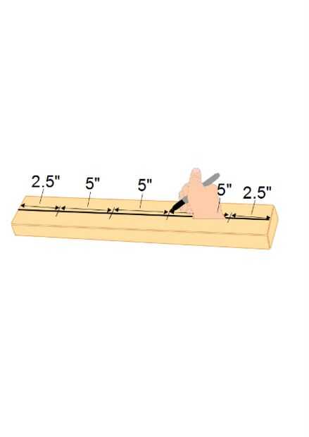 3. Poner marcas en la línea de centro en 2.5", 7.5", 12,5" y 17,5".